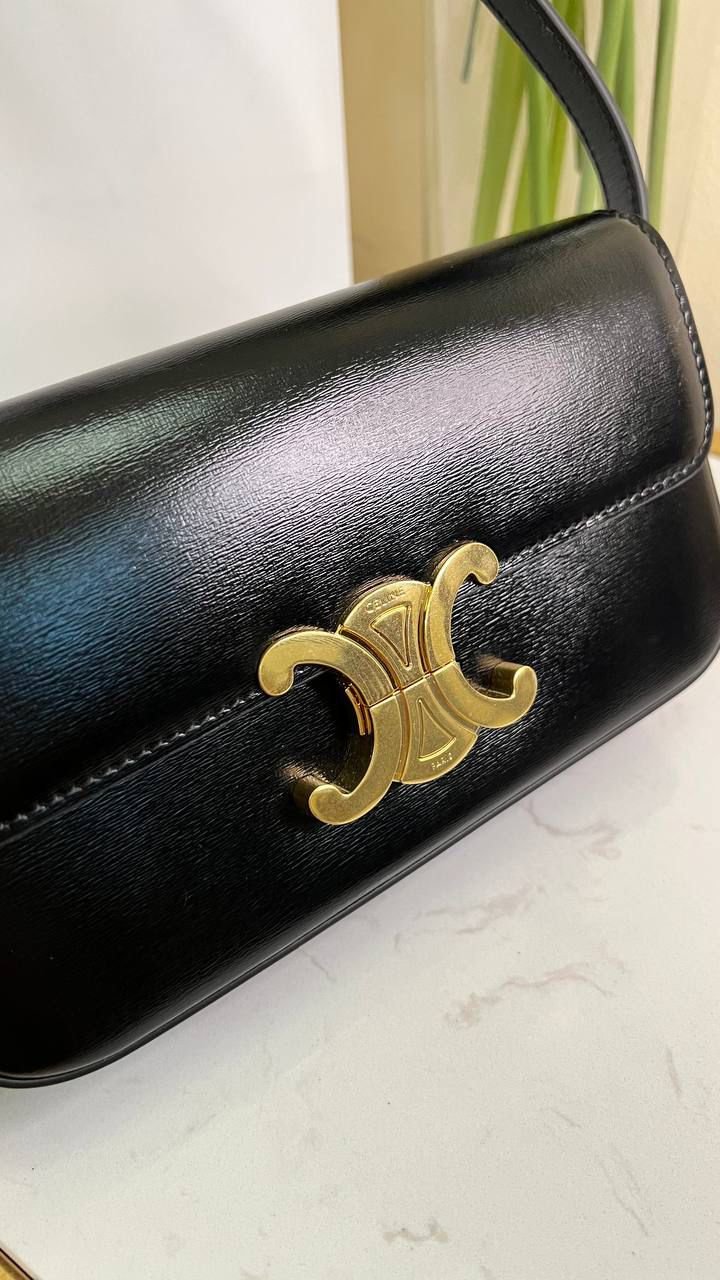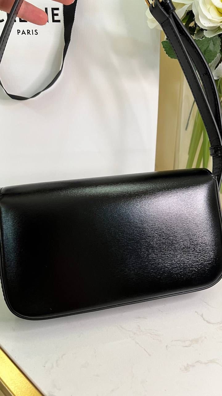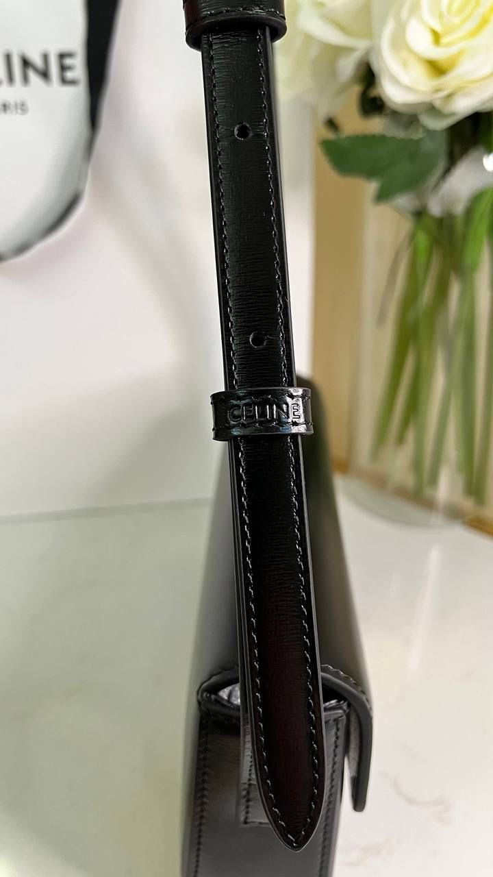 Shiny Calfskin Shoulder Bag Black