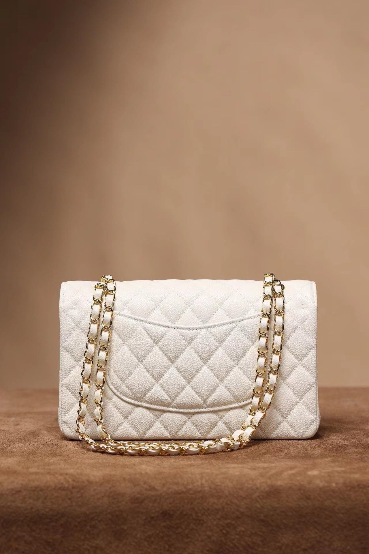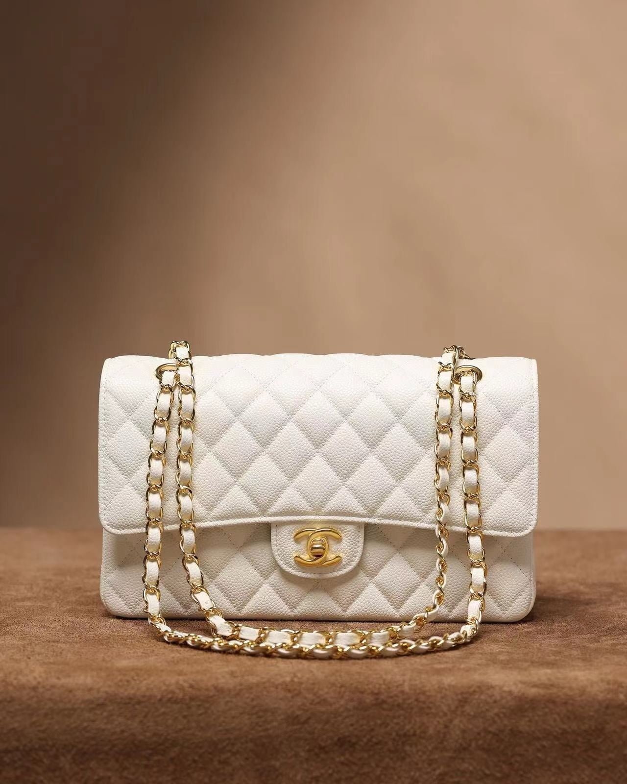 Medium Classic Double Flap Bag White Caviar Antique Gold Hardware