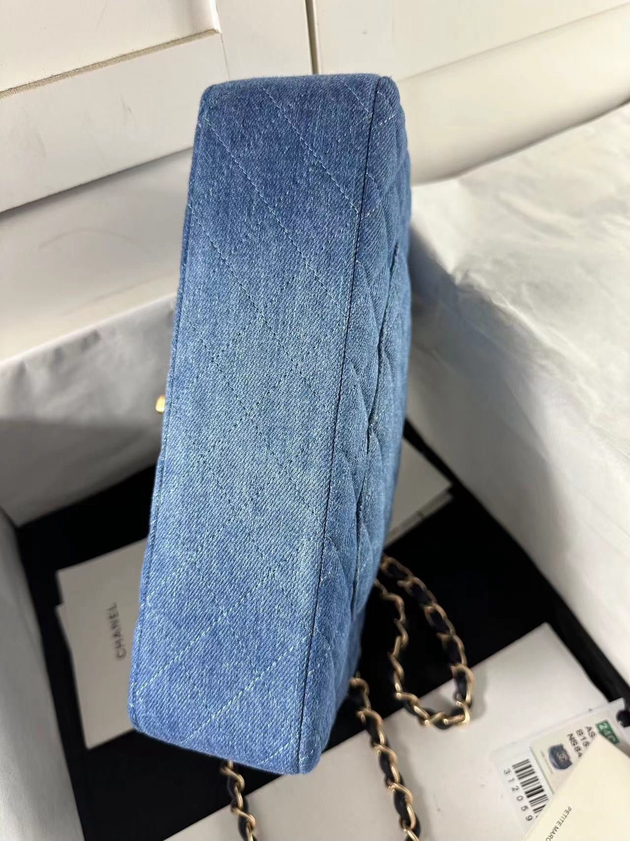 Blue Washed Denim Double Flap Medium