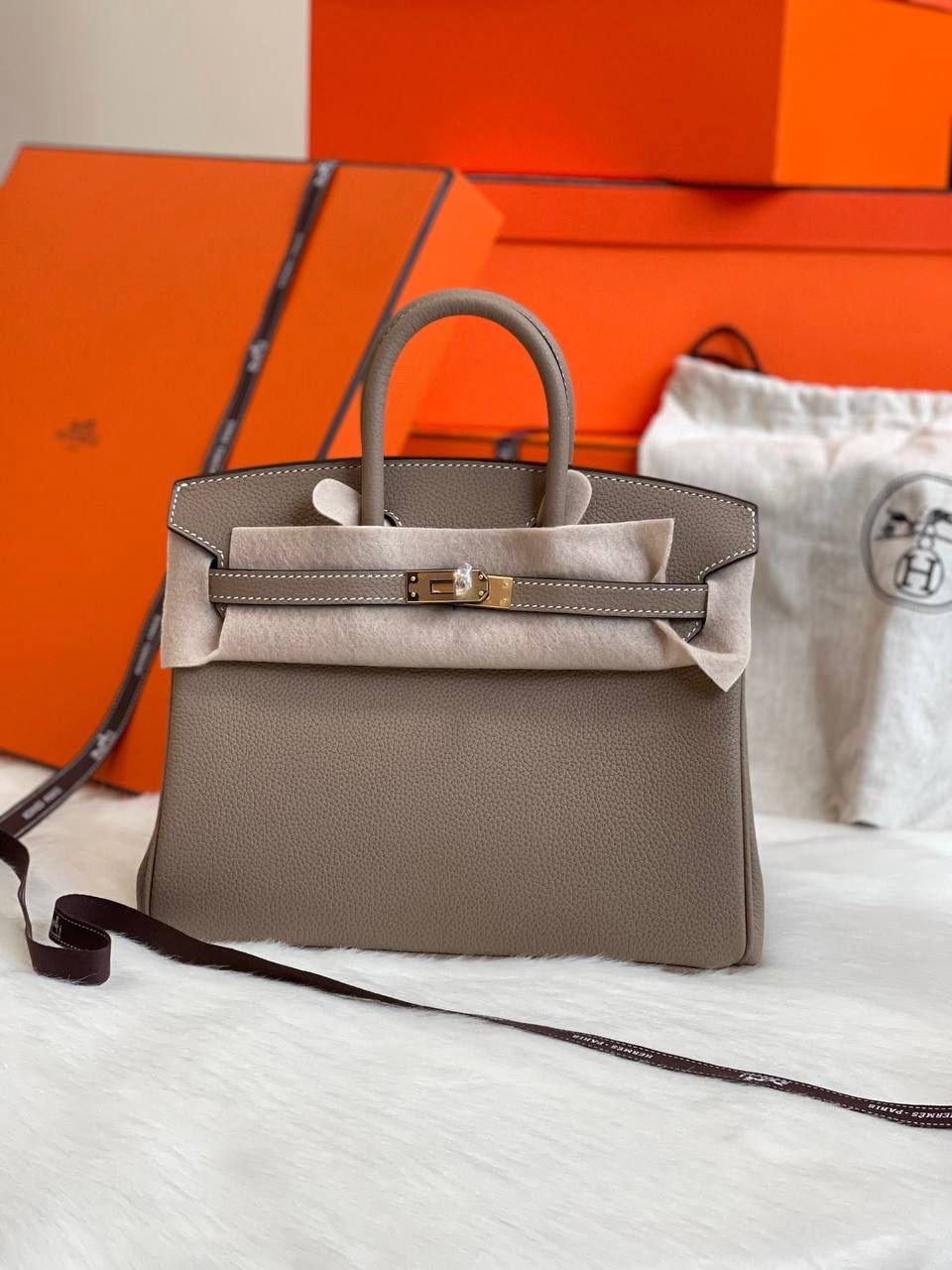 Birkin 25 cm Togo Leather Etoupe Color Gold Hardware
